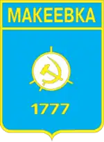 Макеевка Центральной фигурой герба (эмблемы) Макеевки советского образца является стилизованное изображение атома углерода. Он выполнен в виде безанта с четырьмя короткими лучами, символизирующиеми валентные связи и расположенными соответственно. Из описания эмблемы
