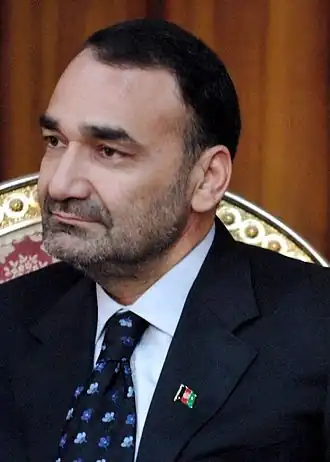 - Выступает против стратегии выхода иностранных войск из Афганистана, поскольку опасается активизации деятельности «Талибана» и в то же время не поддерживал наличие американских баз на территории Афганистана.