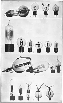 - ↑ Godfrey, Donald G. (1998). «Audion». Historical Dictionary of American Radio. Greenwood Publishing Group. p. 28. ISBN 978-0-313-29636-9.