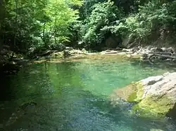 Голубое озеро (или озеро Любви) — небольшой водоём в нижнем течении реки. Является небольшим разливом реки в скальном русле. Температура воды летом также около +9-11 °C. Популярное место для купания[12].