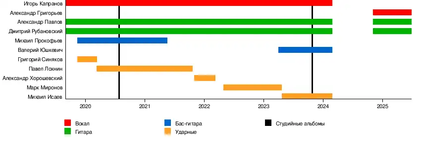- Александр Григорьев — вокал (2024—наши дни)