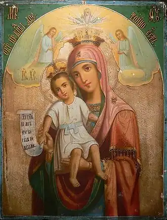 В России наиболее известны и распространены иконы, писавшиеся в русских Ильинском и Андреевском скитах и русском Пантелеимоновском монастыре, вывозимые оттуда многочисленными паломниками, о чём свидетельствуют часто встречающиеся надписи на оборотной стороне иконных досок.