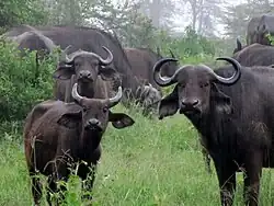 - ↑ Cornélis, D., Melletti, M., Korte, L., Ryan, S. J., Mirabile, M., Prin, T., & Prins, H. H. (2014). African buffalo Syncerus caffer (Sparrman, 1779). In Ecology, Evolution and Behaviour of Wild Cattle: Implications for Conservation (pp. 326—372). Cambridge University Press, Cambridge.