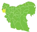 Район расположен в северо-западной части мухафазы. На востоке граничит с районом Аазаз, на юге — с районами Джебель-Семъан и Харим, на севере и западе — с территорией Турции.