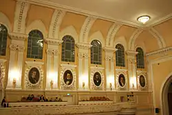 В 1953 году портреты Мендельсона, Глюка, Гайдна и Генделя были заменены на изображения Римского-Корсакова[3], Шопена, Даргомыжского и Мусоргского, соответственно, выполненные советскими художниками[4]. Снятые портреты Мендельсона и Гайдна были спустя много лет обнаружены, отреставрированы и сейчас выставлены перед входом в партер. Портреты Глюка и Генделя утрачены[5].