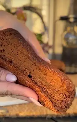 Особенность блюда заключается в продолжительном процессе выпекания, при котором сода, реагируя с кисломолочными продуктами, придаёт десерту уникальный тёмный оттенок и характерный вкус.