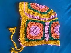 Многоцветные бабушкины квадраты — это эффективный способ использовать небольшое количество пряжи, оставшейся от других проектов, а базовые мотивы бабушкиных квадратов не требуют особых навыков для выполнения.[8]