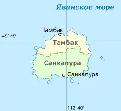 Административно относится к провинции Восточная Ява (индон. Provinsi Jawa Timur), входит в состав округа (кабупатена) Гресик. Территория разделена на два района (кечаматана): Санкапура (индон. Sangkapura) и Тамбак (индон. Tambak).