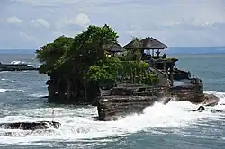 На Бали есть несколько важных «морских храмов» (балийский: pura segara), которые были основаны в 16 веке брахманом из Яванской империи Маджапахит по имени Нирарта, чтобы почтить богов моря.[11] Традиционно считается, что каждый из храмов виден из другого, образуя «цепь» вокруг побережья Бали. Многие из наиболее важных морских храмов расположены вдоль юго-западного побережья острова. Позиции храмов должны были обеспечить цепь духовной защиты для острова Бали.