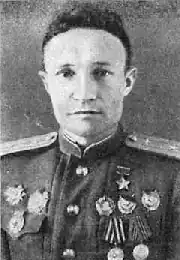 - ↑ Должность и воинское звание на дату присвоения звания Героя Советского Союза.