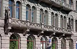 Торгово-промышленный акционерный банк Северных стран был учреждён в 1872 году группой выборгских купцов немецкого происхождения с первоначальным уставным капиталом в 7,5 млн рублей. Начавший деятельность в 1873 году, он задумывался как учреждение для обслуживания внешней торговли Финляндии и вначале имел подразделение в Санкт-Петербурге, но со временем сосредоточился на расширении внутрифинляндской сети филиалов. Для размещения главной конторы банка в 1900 году по проекту архитектора В. Аспелина было построено монументальное по масштабам Выборга здание в стиле неоренессанс по образцу флорентийских палаццо. Помимо банка, в здании размещались и другие организации.