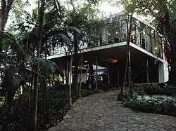 - Стеклянный дом (1951) — первый проект, построенного по принципу открытости внешнему миру, окружение проникает в него становясь его частью[7].