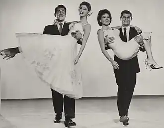 Дин Мартин с Анной Марией Альбергетти и Дэви Мартин с Эвой Барток, фотография со съёмок фильма «Десять тысяч спален»