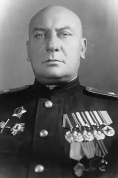 - Орден Кутузова II степени (31 мая 1945)[7] — за умелое и мужественное руководство боевыми операциями и за достигнутые в результате этих операций успехи в боях с немецко-фашистскими захватчиками[8]