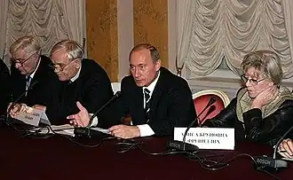 - ↑ Деятели культуры просят Путина не осквернять Сталиным Победу. Lenta.ru (12 апреля 2005). Архивировано 9 октября 2021 года.
