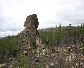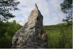 Гора высотой 170 м. — символ Баунтовской земли, сложена доломитами. Коренные (скальные) породы покрыты сверху «плащом» из щебня доломитовой муки, что создает своеобразное условие для растительности.
