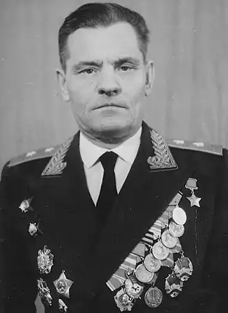 - ↑ Калашников К. А., Додонов И. Ю. Высший командный состав Вооружённых сил СССР в послевоенный период. Справочные материалы (1945—1975). Том 4. Командный состав Сухопутных войск (армейское и дивизионное звенья). Часть первая. — Усть-Каменогорск: «Медиа-Альянс», 2019. — 428 с. — ISBN 978-601-7887-31-5. — С.61.