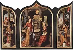 Музей Метрополитен, Нью-Йорк, США | Триптих создан для аббатства Флин близ Дуэ. Второе название: «Прославление семьи святого Бернарда». В качастве сестры Бернарда изображена заказчица — настоятельница монастыря Jeanne de Boubais[6][7]. |