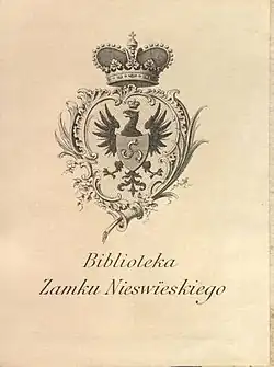 В Европе широко известны экслибрисы семьи Радзивиллов. Каждый из рода имел свой индивидуальный книжный знак, но обязательно с гербом рода Радзивиллов: тремя охотничьими рогами. У Несвижа, как майоратного имения, были свои экслибрисы для библиотеки. Существовал и общий знак — «Библиотека замка Несвижского», выполненный французским гравером Агри[2].