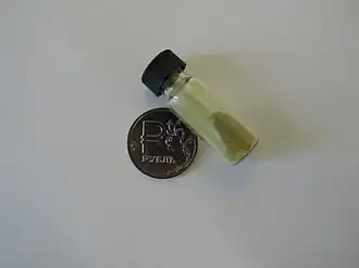 | Состояние | твёрдое, кристаллы бледно-жёлтого цвета |
