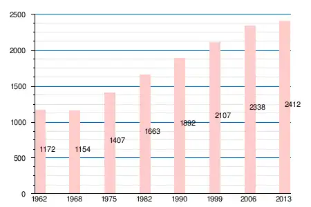Население коммуны в 2011 году составляло 2428 человек[6], в 2012 году — 2420 человек[7], а в 2013-м — 2412 человек[5].