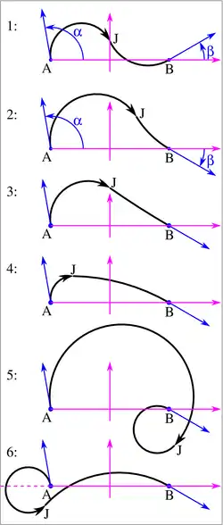 Таковыми могут быть задание кривизны или поворота одной из дуг, фиксированная длина кривой[2], требование минимизации скачка кривизны в точке сопряжения, и т. п.