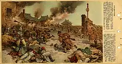 ![]() Японское пропагандистское укиё-э «Полковник Сато штурмует укрепления Нючжуана» | |||