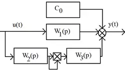 , — постоянные коэффициенты, , — передаточные функции линейных динамических систем с оперативной форме, то есть р означает инерцию дифференцирования: .