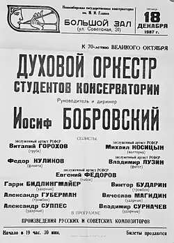 - ↑ Головнёва Н. И., Архипов С. А. Иосиф Исаакович Бобровский и кафедра духовых и ударных инструментов Новосибирской консерватории. 1950—1980 гг. Новосибирск: Новосиб. гос. консерватория им. М. И. Глинки, 2017. — С. 46-47.