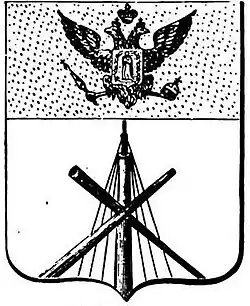Первый герб Бобруйск получил 22 января 1796 года по Указу императрицы Екатерины II. Этот герб стал неотъемлемой частью города и был хорошо воспринят местными жителями, так как был им понятен и ясно символизировал отличие города от деревни. Гербовый сюжет отражал основные промыслы местных жителей (сплавление леса для строительства флота на Чёрном и Балтийских морях) и расположение императрицы к городу[30].