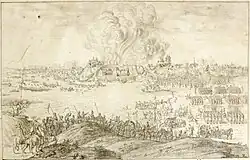 Во время восстания, поднятого Богданом Хмельницким, жители Бобруйска приняли сторону казаков и под начальством Поддубича выдерживали в 1648 году продолжительную осаду, предпринятую Волловичем и Гонсевским, к которым впоследствии присоединился гетман литовский Ян Радзивилл[15]. В ходе восстания Хмельницкого Бобруйск был взят казацко-крестьянскими войсками в 1648 году. В следующем году его штурмовали польско-литовские войска во главе с Янушем Радзивиллом. В отместку за поддержку восстания горожане после взятия Бобруйска Радзивиллом подверглись массовой резне.