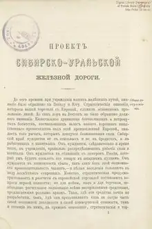 В 1868—1869 гг. были проведены натурные изыскания и разработан «Проект Сибирско-Уральской железной дороги» — один из ранних многочисленных проектов строительства железной дороги до Тюмени, будущего Транссиба.