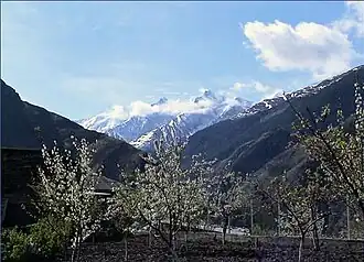 - Хребты Керан (до 3375 м), Тлим (до 3769 м), Росода (до 3662 м) и Гамчил (до 3573 м) — к юго-востоку.