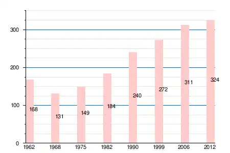 | 168 | 131 | 149 | 184 | 240 | 272 | 294 | 311 | 324 | 327 | 324 |