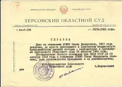 24 августа 1960 года решением Президиума Херсонского Областного суда УССР дело по обвинению Божко Саввы Захаровича было пересмотрено. Постановление Особого совещания при НКВД СССР от 29 октября 1939 года в отношении Божко Саввы Захаровича отменено, дело производством прекращено и он реабилитирован. Справка Херсонского областного суда № 44-У-184 от 25 октября 1960 года.