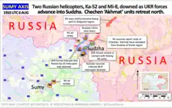 - 1 2 Украина уже две недели наступает в Курской области. Чего она добилась и что будет дальше? Важные истории (20 августа 2024). Дата обращения: 20 августа 2024. Архивировано 21 августа 2024 года.