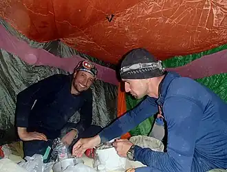 Алексей Серёгин и Екатерина Базарова перед спуском к входу в пещеру Вишневского, 2019