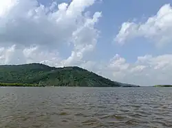 Слева по курсу вход в Серебряную протоку, вдали слева — Серебряный утёс.