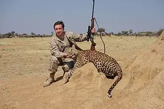 Как и все кошачьи, леопард чрезвычайно живуч. Он считается таким же опасным, как и буйвол, потому что имеет обыкновение затаиваться на собственных следах и молниеносно атаковать охотников. К тому же раненый леопард может притвориться мёртвым. Несчастные случаи при преследовании леопарда — далеко не редкость. Часто для преследования леопарда берут свору собак.