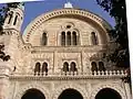 Слои травертина и гранита чередуются в кладке, создавая полосатый эффект. На старых фотографиях запечатлены красные и бежевые полосы, но яркие цвета камня исчезли с течением времени[1].
