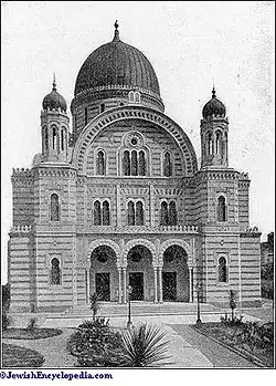 Синагога построена в неомавританском стиле и сочетает в себе черты итальянской и исламской архитектуры. Общий вид храма напоминает внешний облик Софийского собора, используемый при строительства множества мечетей. Здание возведено из белого и розового камня в мавританском стиле. Центральную часть храма украшает большой купол, а по бокам располагаются небольшие башенки. Вход в синагогу выполнен в виде трех арок в форме подков. Купол сделан из меди, которую окислили, чтобы здание выделялось на флорентийской панораме.