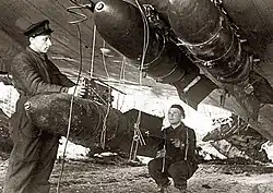 - Самолёт М. В. Водопьянова при наборе высоты по ошибке был атакован истребителями И-16[17], но дошёл до цели и отбомбился по Берлину. После этого попал под зенитный огонь немцев и был повреждён, вынужден был выполнить посадку на оккупированной немцами территории Эстонии в районе Йыхви. Вторым пилотом в экипаже был родившийся в Сибири эстонец Э. К. Пусэп, поэтому с местным населением общался только он, а остальные члены экипажа в контакт с местными жителями не вступали. Через два дня экипаж вышел к своим.