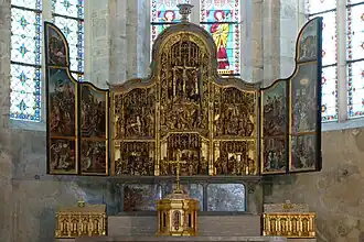 В настоящее время аббатство превращено в музей[4]. Главной культурной ценностью служит выставленное в монастырской церкви фламандское ретабло-триптих, подаренное аббатству Бом городом Гентом в 1525 году. Ретабло имеет 3 метра в высоту и 5,6 метра в ширину, состоит из 25 дубовых досок и украшено живописными (на боковых панелях) и резными (на центральной) изображениями со сценами из жизни Христа. Ретабло признано шедевром фламандского искусства[1].