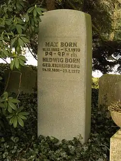 Макс Борн (нем. Max Born; 11 декабря 1882, Бреслау, королевство Пруссия, Германская империя — 5 января 1970, Гёттинген, ФРГ) — немецкий физик-теоретик и математик, один из создателей квантовой механики, сделал существенный вклад в физику твёрдого тела и оптику. Лауреат Нобелевской премии по физике (1954).