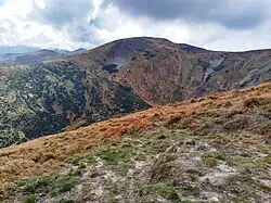 Вершина горы куполообразная, северные склоны крутые. В нескольких местах склоны изрезаны карами давнего обледенения. Господствуют каменные россыпи. Покрытый альпийской и субальпийской растительностью. Развиваются процессы эрозии. Рельеф преимущественно каменистый. На западном склоне горы расположена впадина с небольшими и непостоянными озерцами.