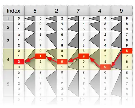 Мы начинаем с верхнего номера в последнем столбце выбранной строки: