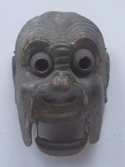 - по материалу, из которого они сделаны, — камэн (деревянные маски, таких большинство) и дзомэн (маски из ткани или бумаги)[38];
