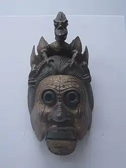 В бугаку используются 22 различные маски, названия которых также являются названием музыкальной композиции, сопровождающей танец, и самого танца[36]. Многие маски окрашены в яркие цвета и изображают утрированное гротескное выражение лица. Одни маски представляют собой человеческие лица неяпонского типа, другие — образы фантастических существ и морды животных[30].