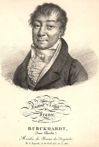 - ↑ See review of Burckhardt’s tables in von Zach's Monatliche Korrespondenz for June 1813, pp.520-532.