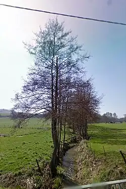 - левым — длинным лесным безымянным ручьём (вдоль него и Бьевра идёт просёлочная дорога Ферм-д’Или (фр. Ferme d’Isly [fɛʁm di'li]),